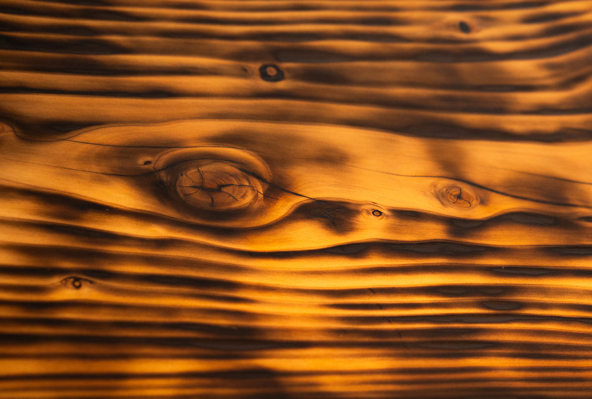 - Venature: Le venature del legno trattato con la finitura cedro bruciato sono ben visibili e mescolano linee sottili e sinuose, che emergono con maggiore intensità dopo il trattamento. Questo gioco di luci e ombre crea una texture ricca, che rende ogni pezzo distintivo e pregiato, perfetto per chi cerca un legno che racconti una storia.